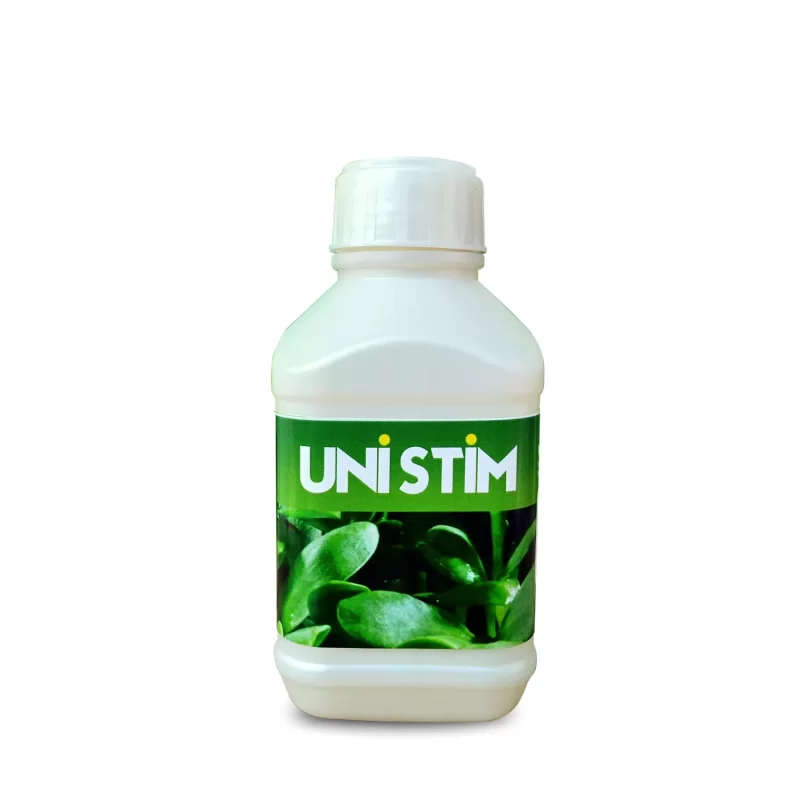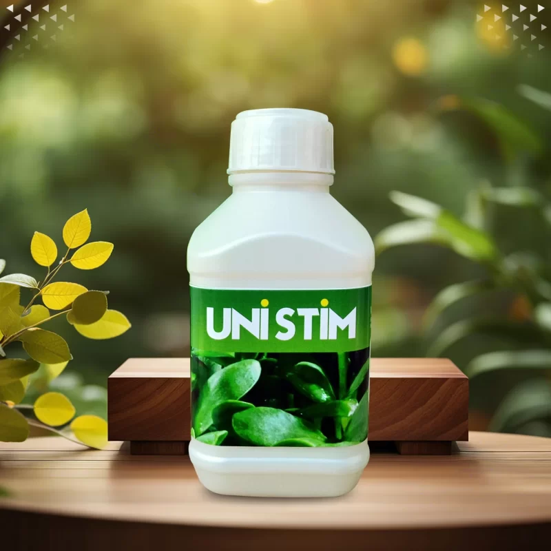 Uni Stim is a flowering stimulant made from 7.5% Carboxylic Acid and 0.15% Folic Acid. It promotes early and uniform flowering, improves fruit set, and enhances crop productivity by supporting energy metabolism and cell division.