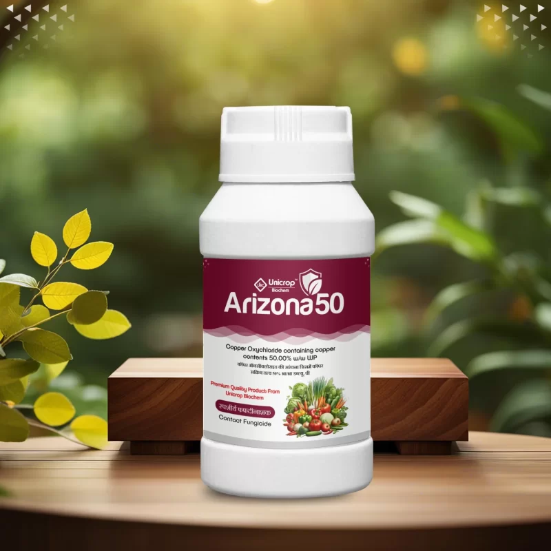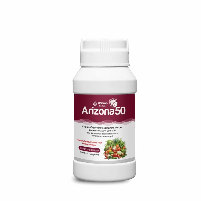 Arizona 50 (Copper Oxychloride 50% WP) is a copper based broad spectrum fungicide which controls the fungal as well as bacterial diseases by its contact action. It also effectively controls the fungus resistant to other fungicides. Due to its fine particles, it sticks to the leaves and helps to restrict the growth of the fungus.