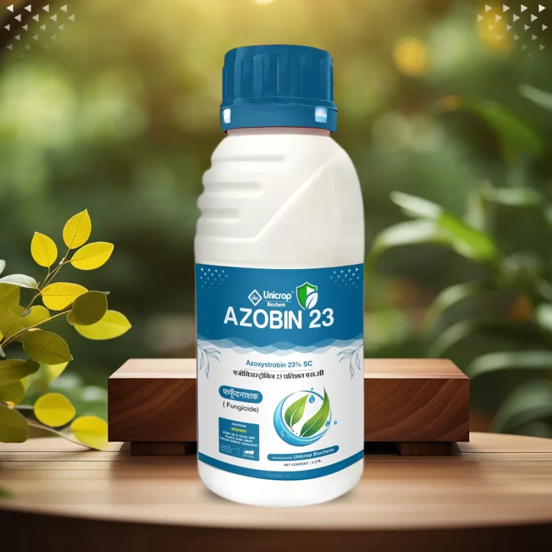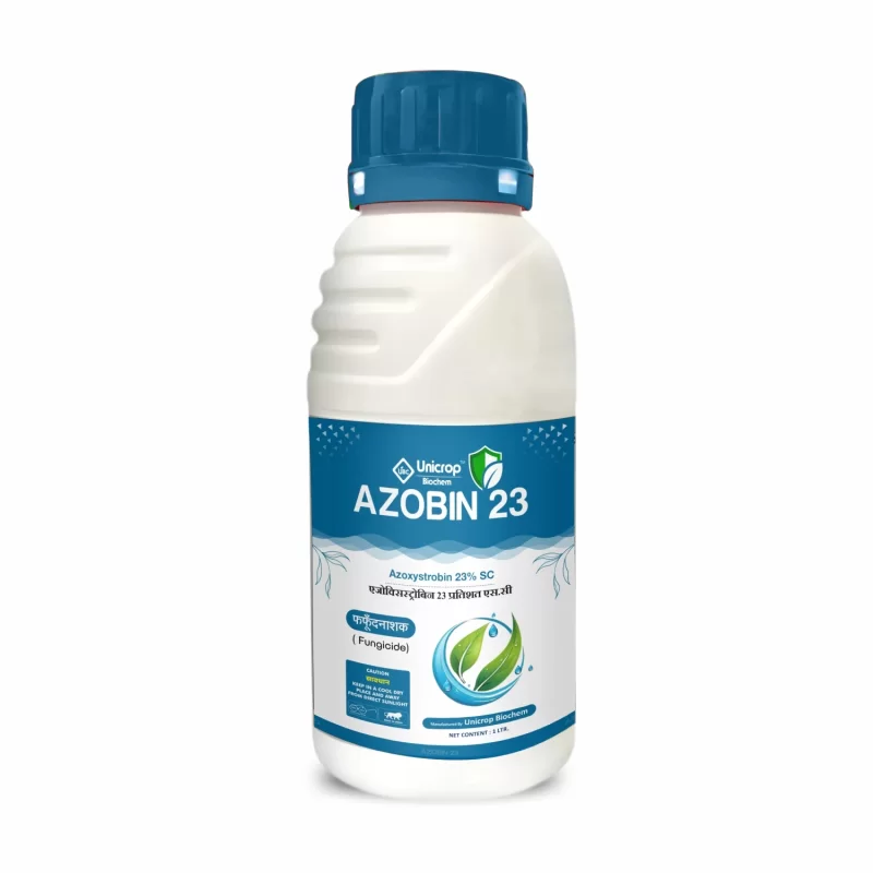 Azobin 23 (Azoxystrobin 23% SC) which is a new generation systemic fungicide having preventive, curative and eradicative action work very effectively against fungal diseases. Azoxystrobin 23% SC is a highly effective systemic fungicide formulated to protect a wide range of crops from various fungal diseases.