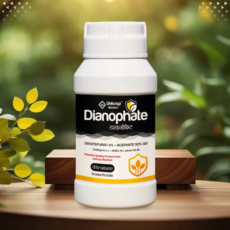 Dianophate (Dinotefuran 4% + Acephate 50% SG) is a combination insecticide that acts on the nervous system of the insects. It is effective in controlling sucking pests such as leafhoppers, thrips, aphids and whiteflies on cotton and other crops. It has a dual mode of action that helps in resistance management and also gives a greening effect on the crops. It is available as water soluble granules (SG) that can be easily mixed with water and sprayed on the crop foliage.
