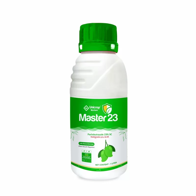 Master 23 contains 23% SC Paclobutrazole, which promotes the elongation of cells and the growth of stems. By decreasing the levels of active gibberellins, paclobutrazol can make plants denser and more compact. This leads to a decrease in vegetative growth while encouraging an increase in flowering and fruiting. Paclobutrazol is utilized on various crops such as mango, grape, citrus, apple, and pear. It can be applied either to the soil or as a foliar spray. The application rate will differ based on the crop and the intended outcomes.