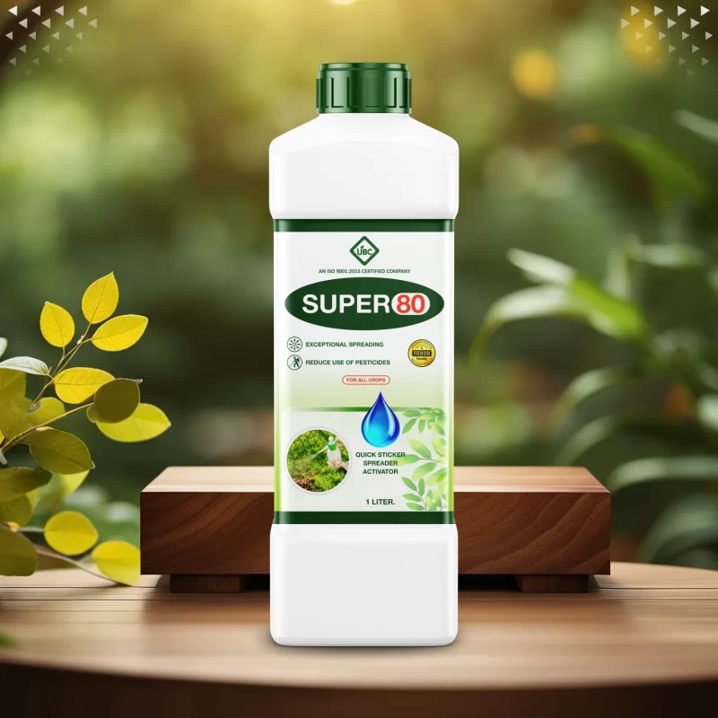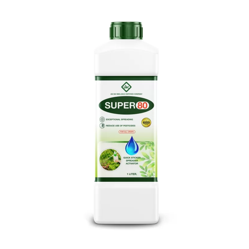 Super 80 is a premium non-ionic surfactant with 80% active ingredients, widely used in agriculture as an effective sticking agent. This high-performance surfactant significantly improves the performance of pesticides, herbicides, fungicides, and foliar fertilizers by reducing the surface tension of spray solutions. Super 80 functions as a wetter, spreader, penetrant, and sticking agent, making it an essential tool for modern farming practices. Super 80 acts as a superior sticking agent, forming a thin, adhesive film over plant surfaces. The result is longer-lasting protection and reduced need for reapplication, even in wet conditions.