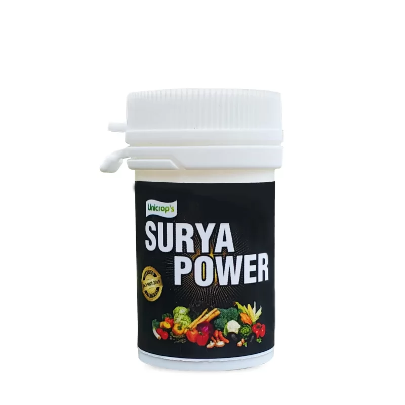 The unique synergy of PGR compounds within SURYA POWER mimics and enhances the plant’s own hormone pathways—stimulating floral bud differentiation, improving nutrient translocation, and regulating plant metabolism during the critical flowering phase. This leads to synchronized blooming, better pollination success, and stronger reproductive development, even under environmental stress conditions.
