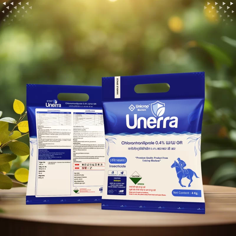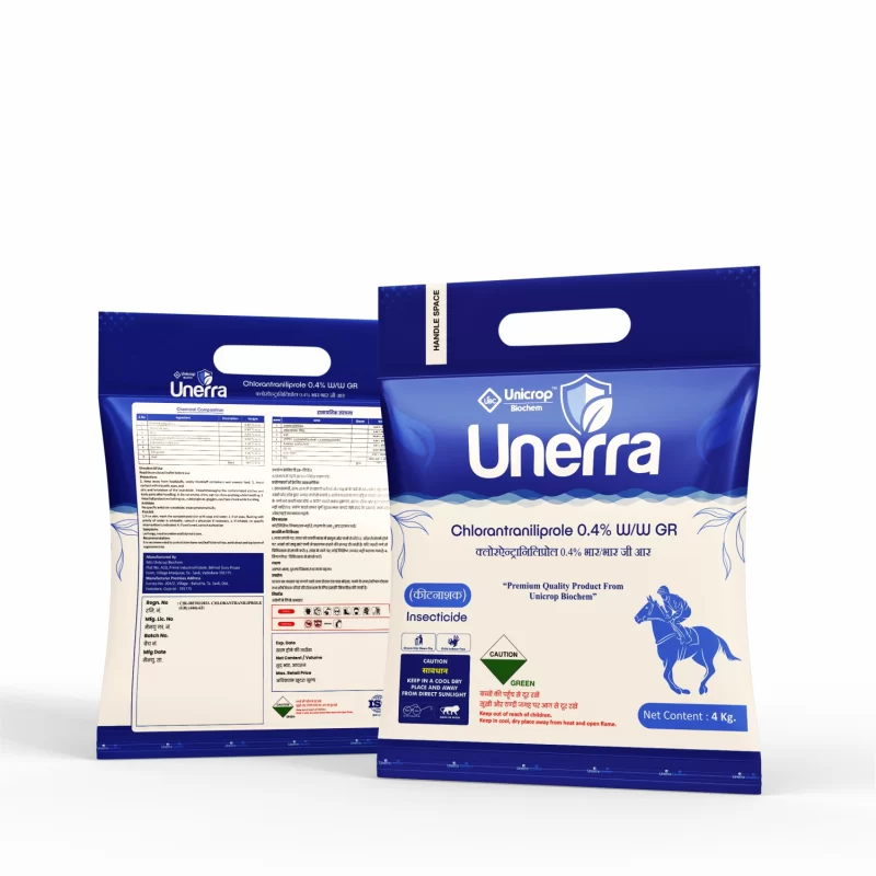 Unerra Insecticide powered by the active ingredient Rynaxypyr in the granular form is effective for controlling pests on different crops. Chlorantraniliprole insecticide is science-driven and designed specifically to meet the needs of Indian farmers. Unerra insecticide has a unique mode of action, controlling pests resistant to other insecticides while its selectivity to non-target anthropods and conserves natural parasitoids, predators, and pollinators.