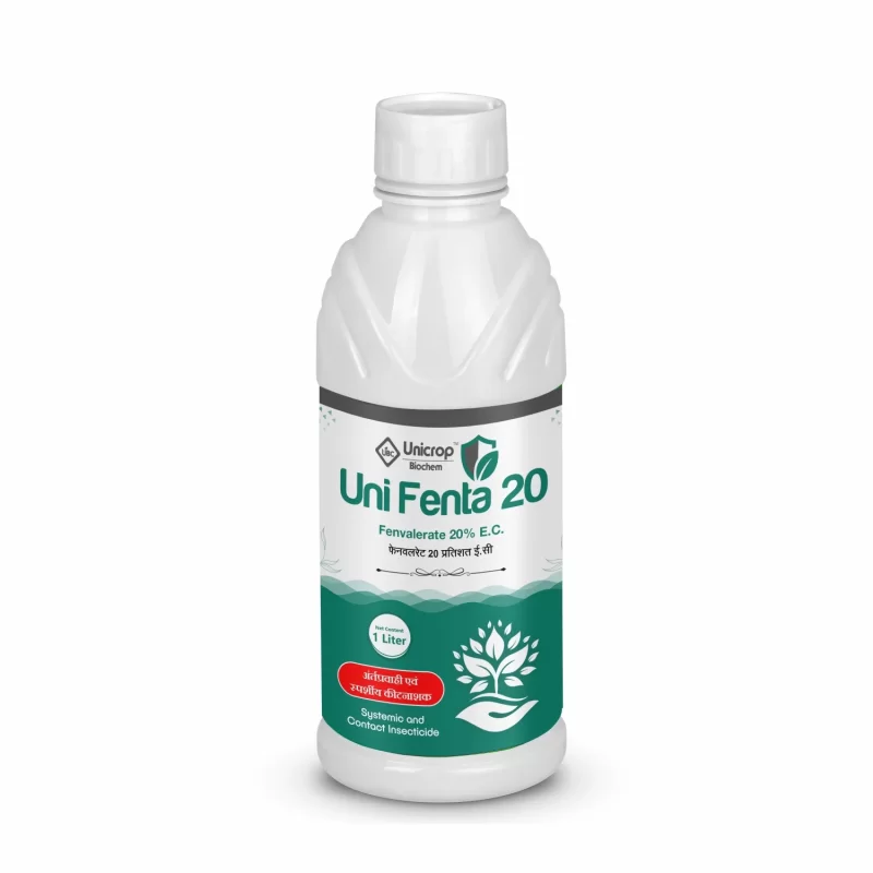 Uni Fenta is a 20% EC formulation of Fenvalerate, a Contact Synthetic Pyrethroid Insecticide, which is used to protect crops from harmful pests and insects. It helps to promote the growth of the crops.
