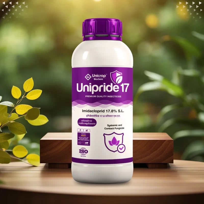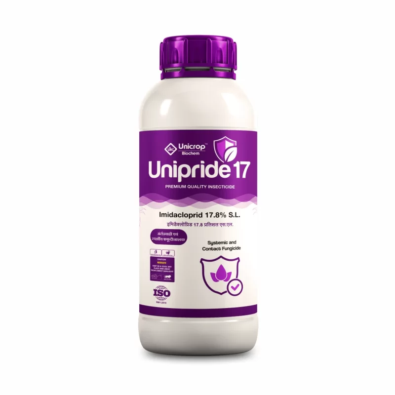 Uni Pride 17 (Imidacloprid 17.8% SL) contains the active ingredient Imidacloprid as well as auxiliaries and inert material. It is used as a spray to control sucking and other insects in various crops. It belongs to the Neonicotinide group of systemic insecticides that effectively control sucking insects and termites. It is a highly systemic insecticide that is rapidly absorbed by plants and has high xylem mobility. It can be applied at any stage of crop development, but the leaves should be green and succulent for maximum efficacy.