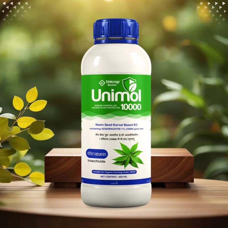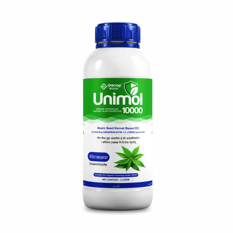 Unimol 10000 is a potent bio-insecticide derived from azadirachtin and neem seed extract, designed to effectively control a range of pests, including leaf-eating caterpillars and sucking insects. Its eco-friendly formulation not only safeguards crops but also preserves beneficial insects, making it an ideal choice for organic farming.