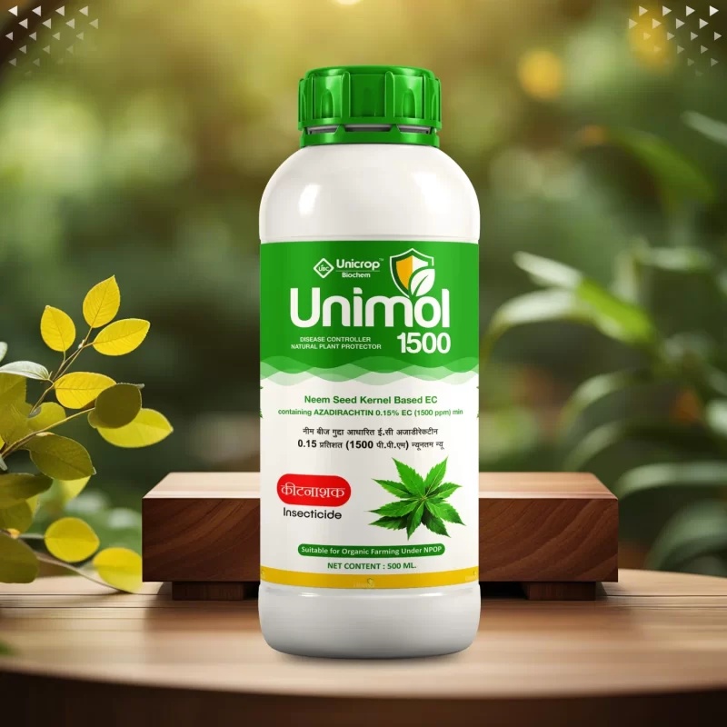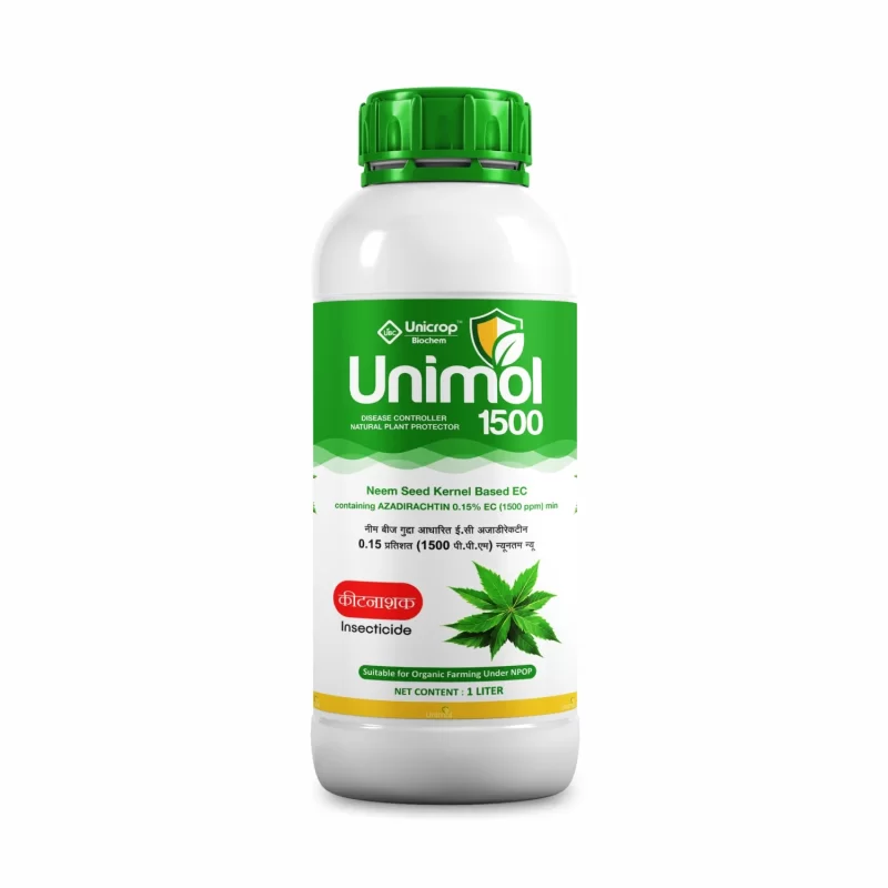 Unimol 1500 is a potent bio-insecticide derived from azadirachtin and neem seed extract, designed to effectively control a range of pests, including leaf-eating caterpillars and sucking insects. Its eco-friendly formulation not only safeguards crops but also preserves beneficial insects, making it an ideal choice for organic farming.