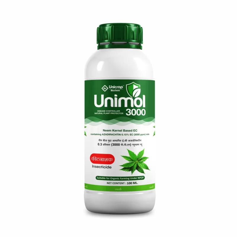 Crops: Unimol 3000 is suitable for application on Cereals , Millets , Pulses, Oilseeds, Fibre Crops , Sugar Crops , Forage Crops , Plantation crops, Vegetables, Fruits, Spices , Flowers , Medicinal crops , Aromatic Crops , Orchards and Ornamentals.