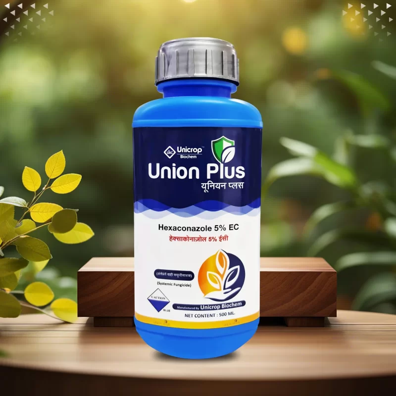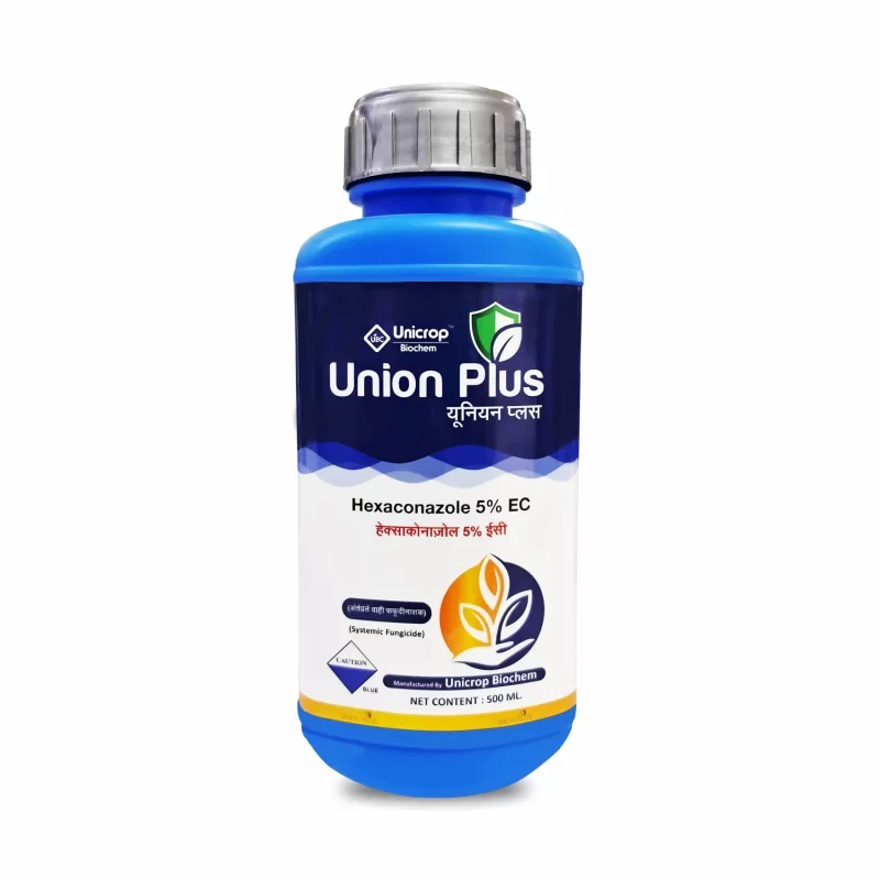 Union Plus (Hexaconazole 5% EC) is a powerful systemic fungicide that provides long-lasting control of a wide array of fungal diseases in various crops. Union Plus is an excellent triazole fungicide effective against variety of fungal diseases. Union Plus is known for its protective, curative, and antisporulant activity. It offers a longer duration of disease control.